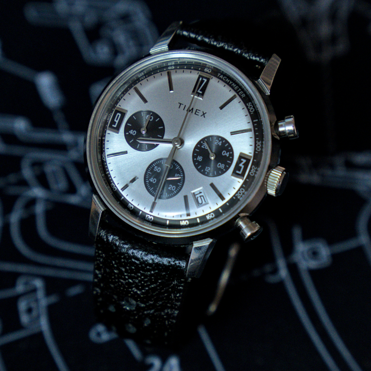 Here are my thoughts on the Timex Marlin Tachymeter Chronograph in 40mm with leather strap. Disclaimer: I’m not what would you call a watch nerd, maybe a watch enthusiast but I consider myself a normal person who likes watches. Watches are great tools that can make your life easier but also improve your attire. For photo reference I have a medium size wrist (6.75in in diameter) and I’ll be touching topic such as design, wearability, practicality and how it fits into my daily life.